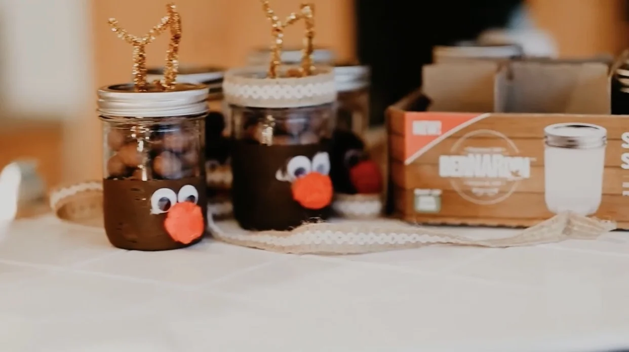 Last but certainly not least, take your pipe cleaners and cut them in half. From there, fold the cleaner and twist to create a set of ears. Glue the ears on the top of the jar and voila. You did it! You made the cutest DIY mason jar gift for your loved ones. Kaia was so excited to give them away that naturally, we couldn’t actually wait until Christmas. Kaia’s favourite part about gifting her jars? Asking them if they need a hand eating all the treats.